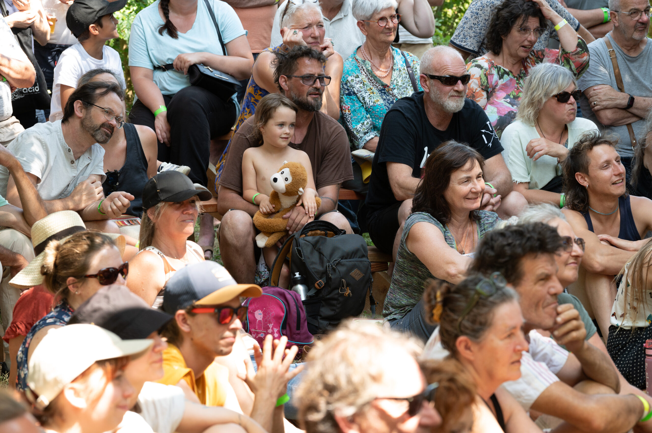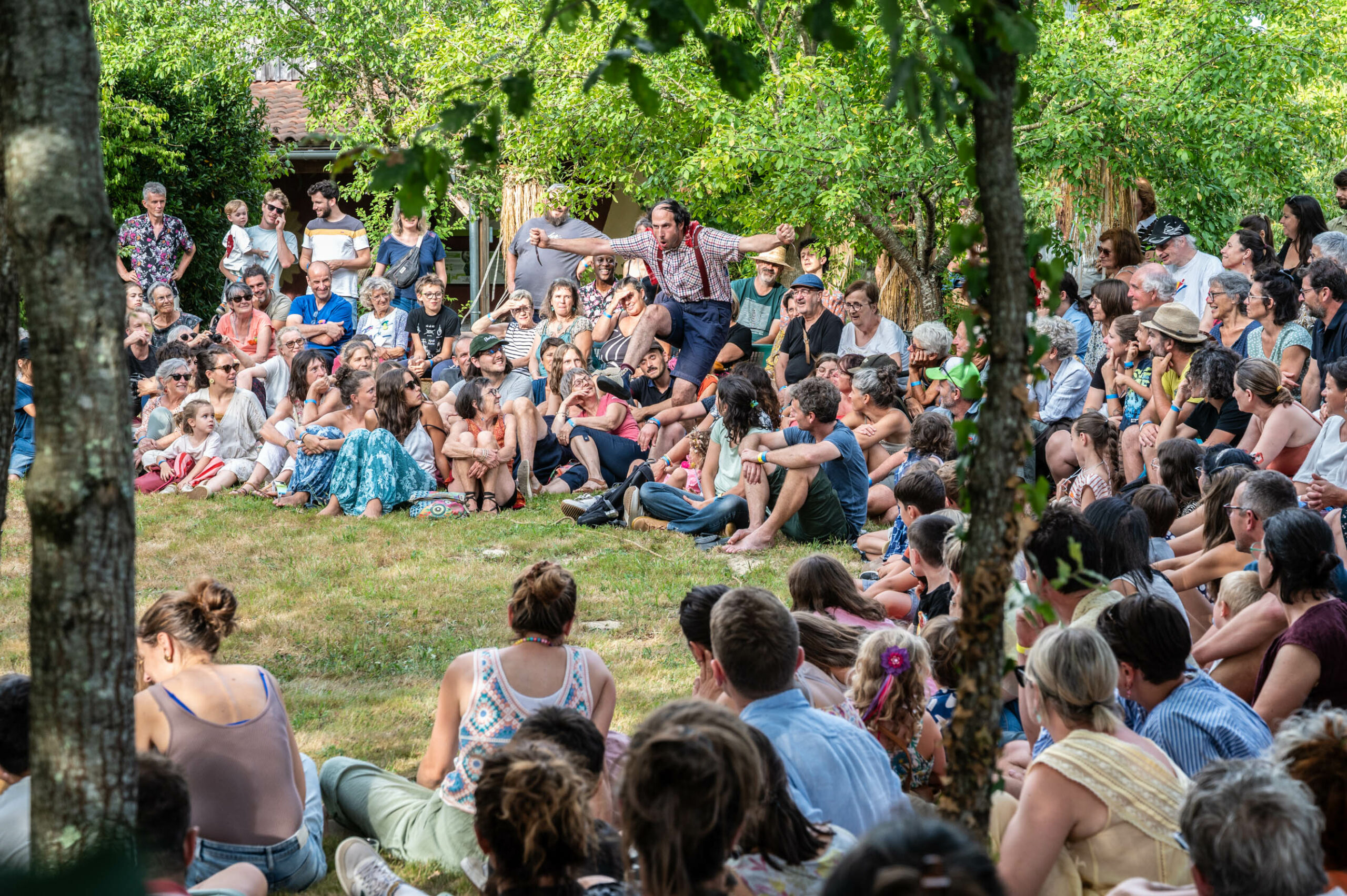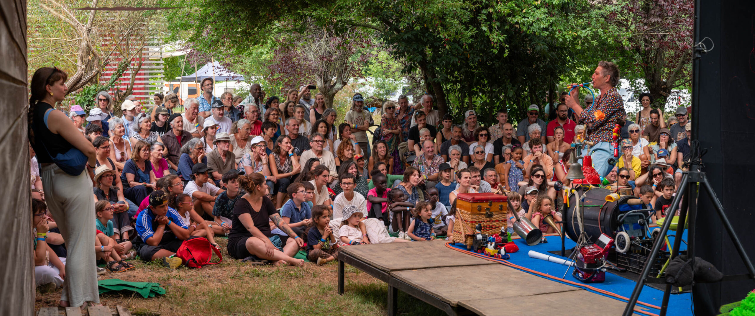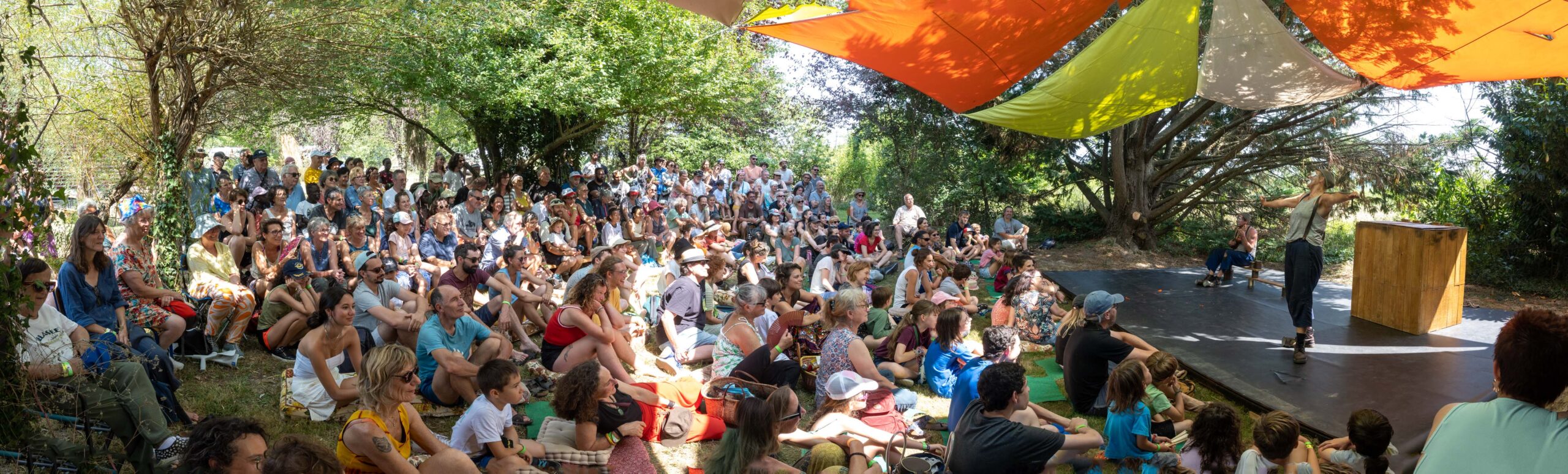 Durant 2 après-midis et 3 soirées, seul.e, en famille ou entre ami.es, vous pourrez découvrir des spectacles vivants, rire, vous émouvoir, vous laisser surprendre, admirer la finesse d’un geste et la justesse d’un mot… En chemin pour prendre une crêpe ou une glace au goûter par gourmandise, vous laisser émerveiller… Vous pourrez également vous installer à table ou dans l’herbe pour vous rafraîchir avec une boisson ou déguster un bon repas, fait maison avec des produits de saison, bio et locaux… Un cadre de verdure propice au plaisir des sens et des émotions. Entraînez vos zygomatiques et le rythme de vos applaudissements tout au long de l’année : le prochain festival se prépare déjà !